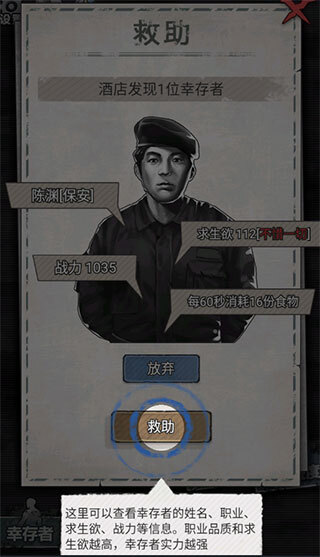 1.游戏可以救助幸存者,从而增强自身的战力