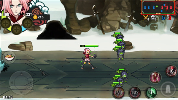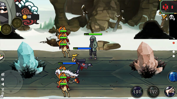 2、不断的冒险和战斗解锁和升级忍术技能。