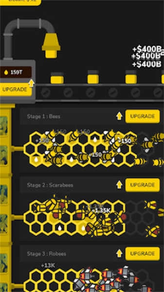 3、点击提升效率:通过点击可以提高蜜蜂的生产力,操作简单直观,让玩家能快速参与到提升产量的过程中,增加互动感。