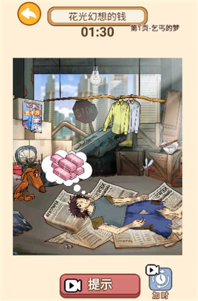 5、拖动左下角的男子去摩擦地面上的洞口,让藏匿在里面的私房钱显露出来,最后把私房钱交给小美就能通关了。