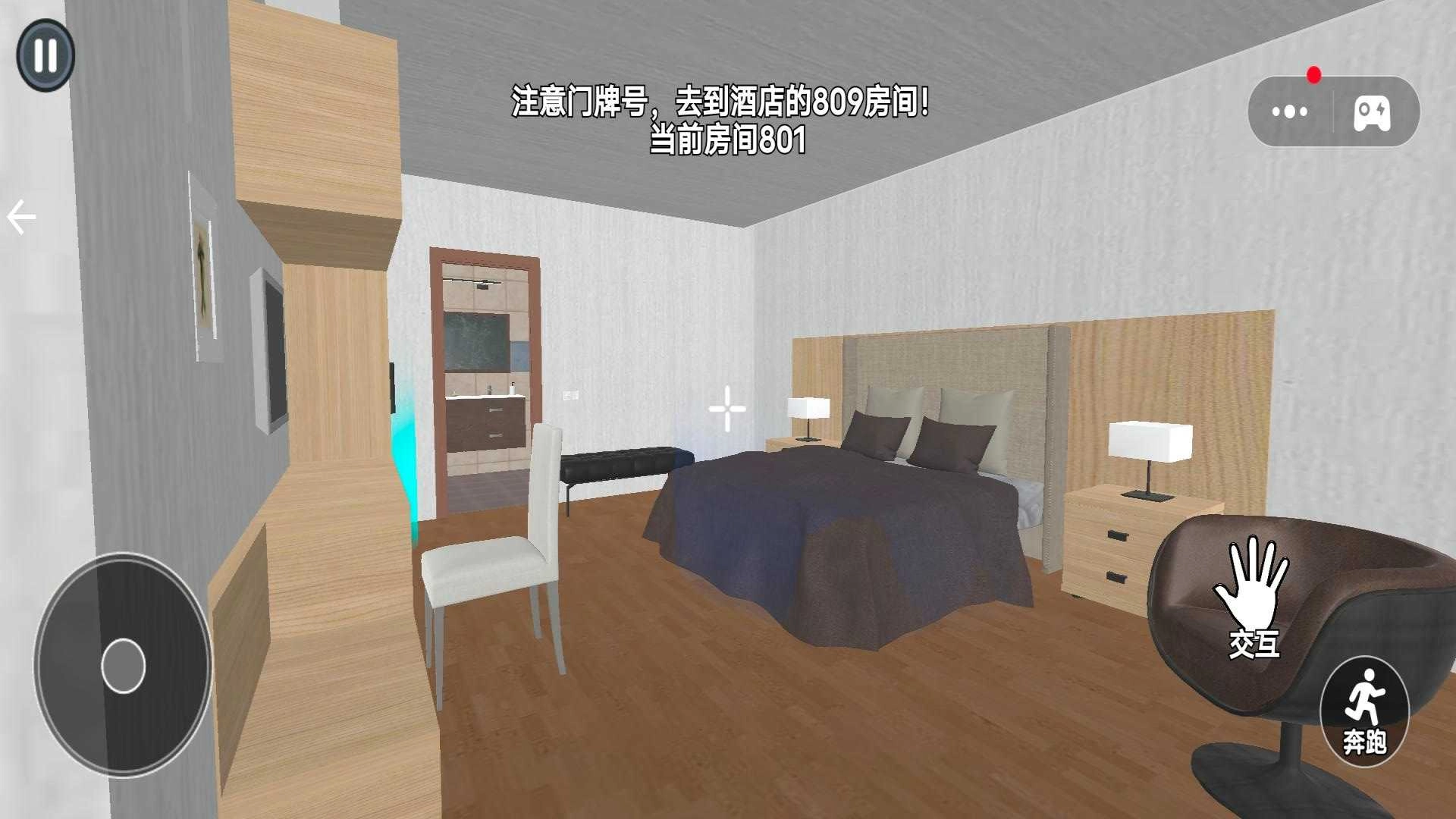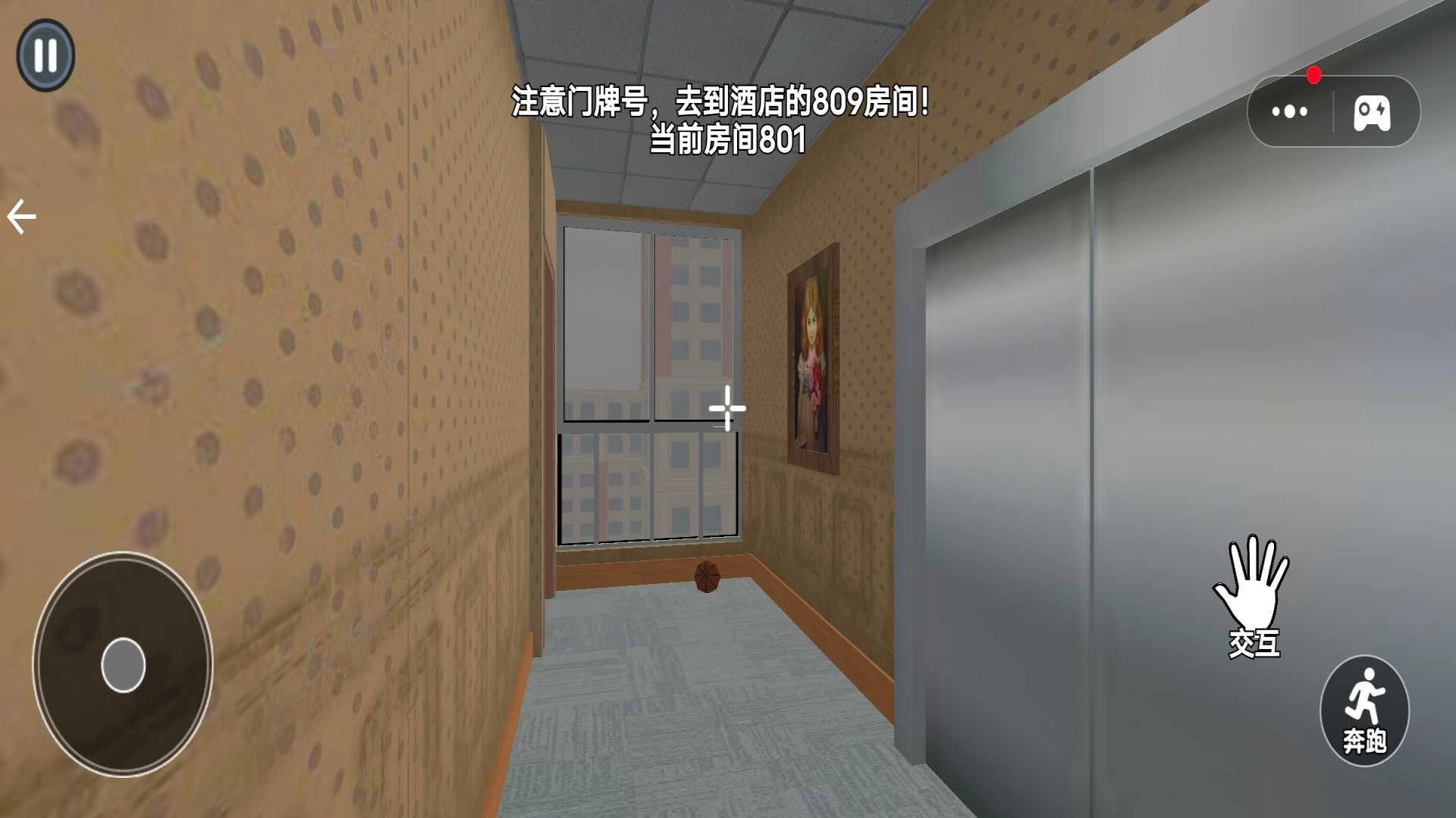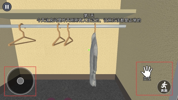 3、操控角色,用左侧圆盘移动、右侧“交互”“奔跑”键,寻找诡异点。