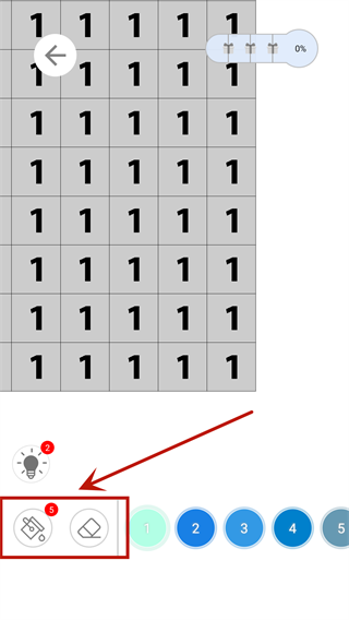 4、填色的操作方式十分简便,界面上设有两个主要按钮,一个是用于填色的功能键,另一个是用于擦除的功能键。操作时,只需依据方块上标注的数字选取对应的指定颜色,然后在相应的方块位置进行涂色即可。