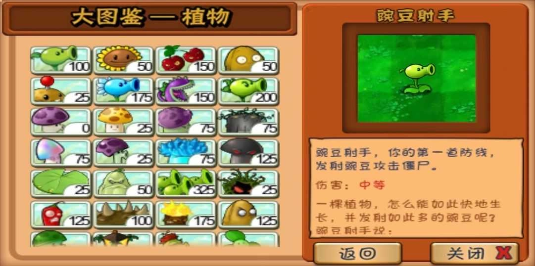 3、49种功能互不相同的植物,并可收集硬币购买蜗牛等多种道具。打开图鉴,就可以看到植物与僵尸的详细介绍。