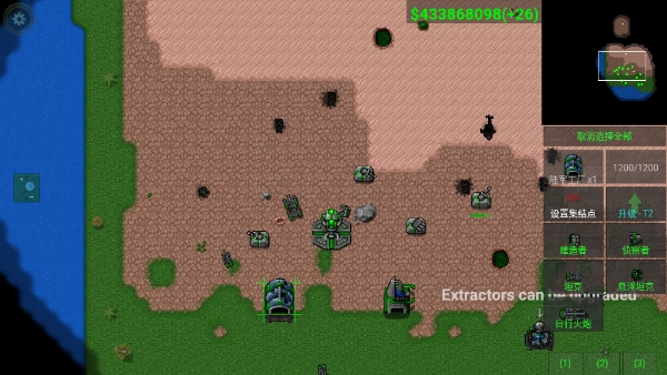 我们现在只有少的可怜的资金,怎么办呢?当然是找一个黑漆漆的大坑,然后让建造车在上面建‘’资金提取器”,钱就开始源源而来了,可升级,建议初期就升。
