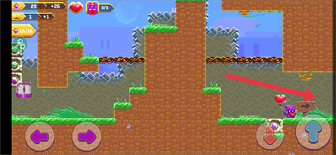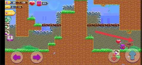 1、在游戏中,玩家可通过左右箭头按钮来操控角色移动,右侧则是跳跃按钮。