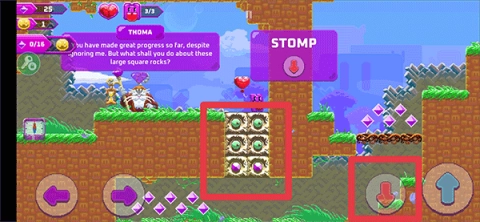 5、当方块岩石阻挡过关口时,可以点击红色向下箭头将它们击碎。