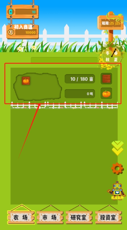 3、点红色框里的南瓜地,就能收获成熟的南瓜作物。