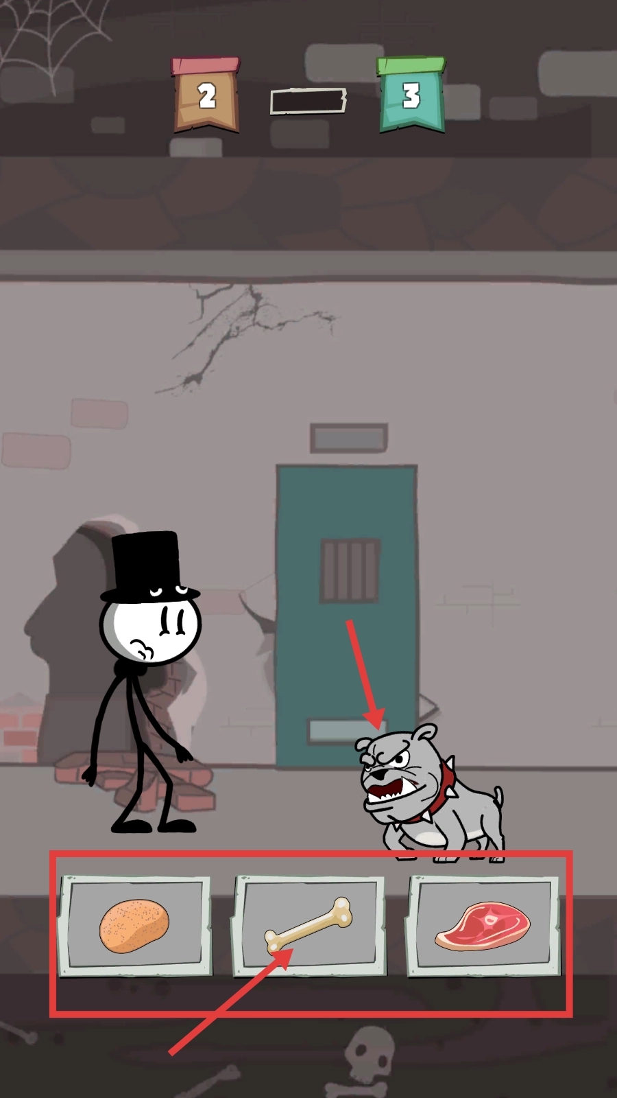 3、遇到凶狠的看守犬时,选择使用骨头道具安抚它,避免被攻击,继续逃脱之路。