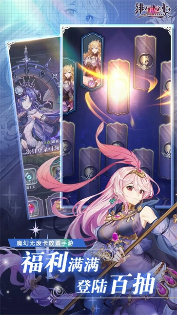 绯石之心这款游戏为玩家呈现出轻松护肝的放置类RPG卡牌策略玩法,并且游戏还准备了极为丰厚的福利礼包,福利相当充足,新手玩家上线登录后,就能直接领取百连抽奖励。