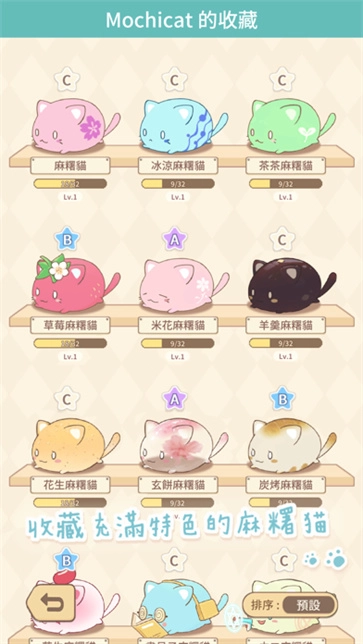 麻糬猫收藏中文版是一款主打休闲治愈风格的猫咪主题模拟养成小游戏,整体采用清新软萌的Q版卡通美术风格,为玩家打造了众多憨态可掬的可爱小猫形象,让你能和这些小家伙共度一段段温馨美好的时光。在这款最新的麻糬猫收藏中文手机版里,每一只软萌的小猫都化身为了爱吃的软糯麻糬猫,你可以踏入麻糬猫的奇妙世界,去结识并邀请各种各样的麻糬猫,和它们成为亲密的好朋友。