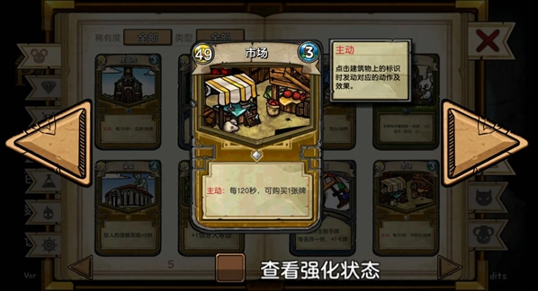 这款游戏巧妙融合了实时策略、卡牌构建与塔防三大核心元素。它不仅拥有精致细腻的画面,还设计了丰富多样的随机事件,更提供了高度自由的玩法,为玩家打造出独一无二的策略体验。游戏内的卡牌主要分为四大类别:经济卡,可帮助玩家获取各类资源;军事卡,能召唤不同的作战部队;建筑卡,用于建造各类防御工事;技能卡,则可以强化玩家的各项能力。整个游戏的卡牌数量超过500张,并且每张卡牌都具备独特的功能与效果。
