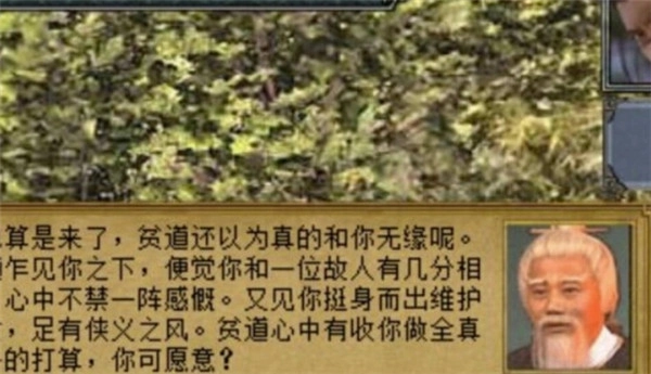 对话的最后会出现两个选项,如果选择第二个就会真出去,前面的都白做了,会导致角色没有门派。没有门派最难发展,因为好的武功秘籍都是在门派中传下来的,如果选择第一个,那么就可以成功加入古墓派了,加入古墓派之后可以学到很多古墓的技能都是比较强力的。
