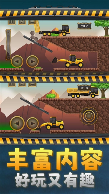 1、各种工程车辆,模型相当的精致,真实的物理原理,增大了难度。