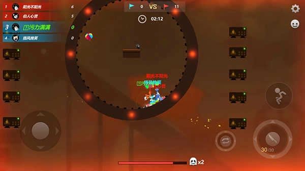 激斗火柴人这款游戏,除了有单人模式可供体验外,还能支持2到4人进行本地或在线对战,特别适合和朋友们组队开黑、欢乐互动;游戏采用简约的2D画面风格,并且包含无限乱斗、跑酷模式、巅峰对决等多种不同的玩法模式。