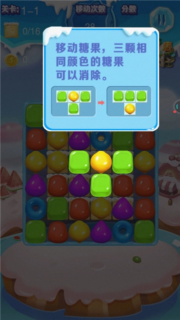 1、你需要简单的滑动和点击你的手指来完成所有的操作,三个消除经典供你尝试;
