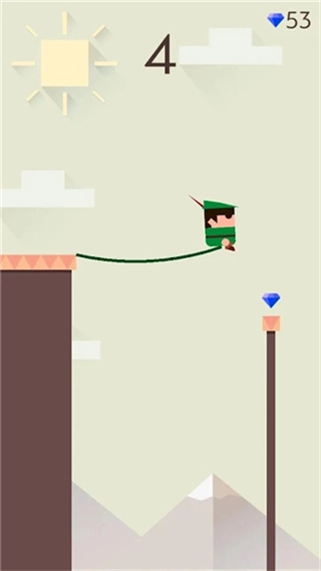 《浪荡天涯》是一款趣味十足的休闲益智闯关小游戏。在游戏里,玩家要操控角色借助摆荡绳子等方式在不同平台间跳跃,收集宝石并顺利抵达终点。游戏的关键在于判断绳子长度是否足以够到对面悬崖——过长或过短都会导致角色坠落,因此需要合理把握松手和搭放绳子的时机,避免角色受伤。