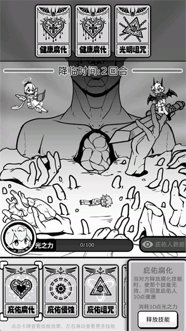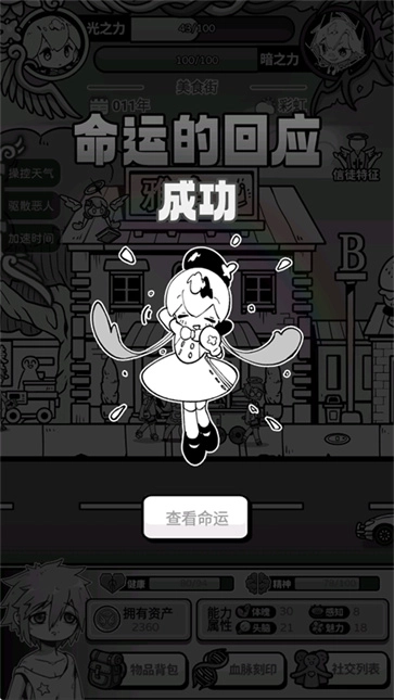 天使模拟器中文版是一款极具趣味性的全新文字策略卡牌模拟游戏,采用独特的黑白漫画卡通画风,能为你带来别样的视觉感受。在这款最新的天使模拟器中文手机版中,你将化身为刚被分配到天界救赎部的天使,核心任务是为那些命格极差的倒霉短命之人提供庇护,助力他们延长寿命。