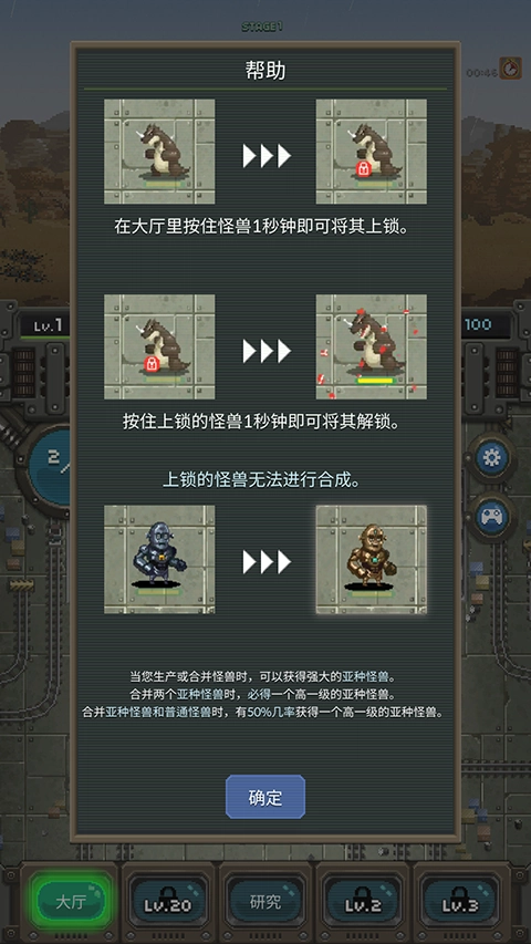 1、每个关卡都有不同的目标和难度,你需要根据情况制定战术策略,得合理利用怪兽的技能和道具才能成功通关。