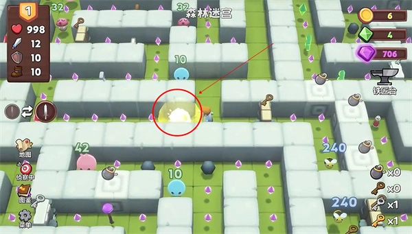 3、比方说选择了森林,就能进入森林迷宫。玩家扮演的勇者要一路收集宝石或道具;