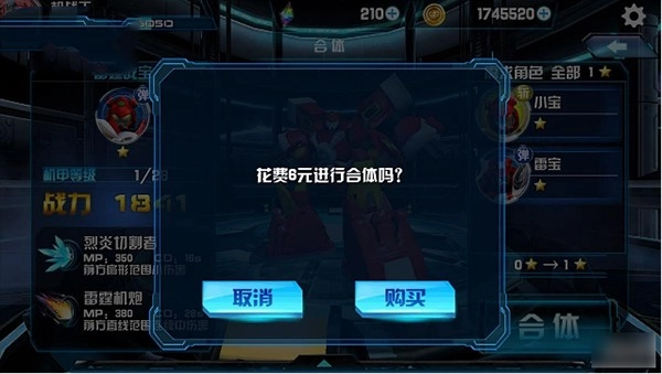 现在游戏中提供的合体机甲共有4款,分别是来自《果宝特攻》世界的果宝战神、《快乐酷宝》世界的雷霆战宝、《钢铁飞龙》世界的巨龙六合体、《超兽武装》世界的超兽神合体。③完成合体的机甲要进行升星操作,需先把对应的子机甲全部提升至相应的星级。