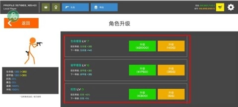 进入角色升级系统,强化角色的生命值、装甲和抗性等属性,提升战斗能力。