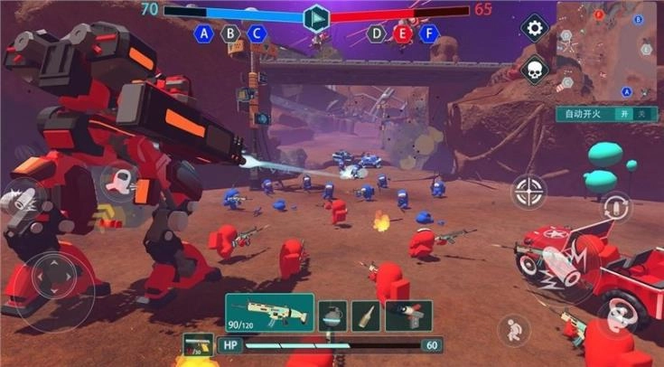 1、灵活运用手指操控角色,拿起重型武器展开射击对决;
