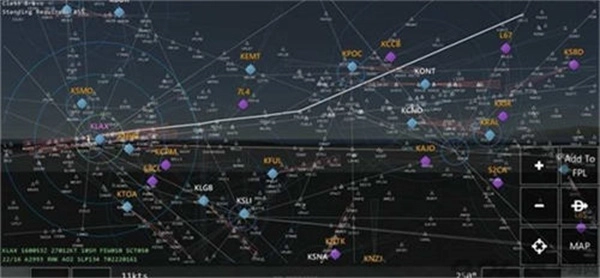 4、进入后选好目的地点,DIRECT TO是定行向,导航图右下角有加减号是放大和放小地图,RST是飞机位置。(定好目的地后点,PAGE退出,右边六个键基本没用就是飞机上的警示灯。)