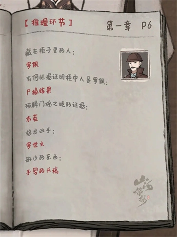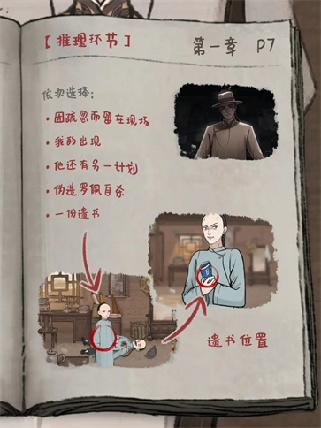 游戏开场后,随着剧情推进我们选择吃下潮糕,然后我们就会陷入昏迷,第一关正式开始!随后我们就会进行第一处剧情推理,细节可见图P1。