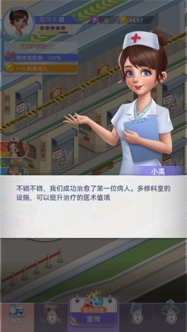 3、通过完成各种任务,不断解锁高级设备,升级医疗设施;