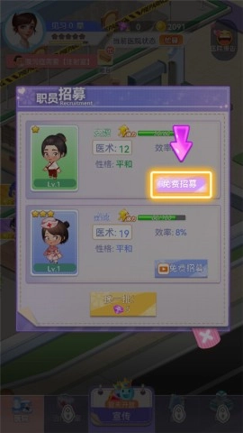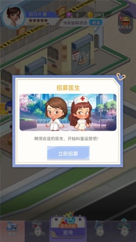 9、通过免费招募,获得新医生,提高医院的治疗能力;