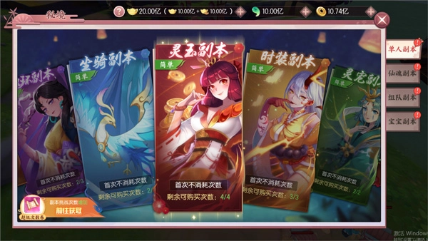 除了仙灵外游戏当然少不了副本!PVE副本包含了单人副本、仙魂副本、组队副本和宝宝副本等等。其中单人副本还包括灵玉、时装、灵宠、灵骑、魂环、坐骑副本,多重副本应有尽有,是所有社恐降妖师的福音;仙魂副本是爬塔副本,产出仙魂及其材料;组队副本包括经验、装备、情侣、守卫副本,组队参与收益更高,叫上好朋友一起打本吧!