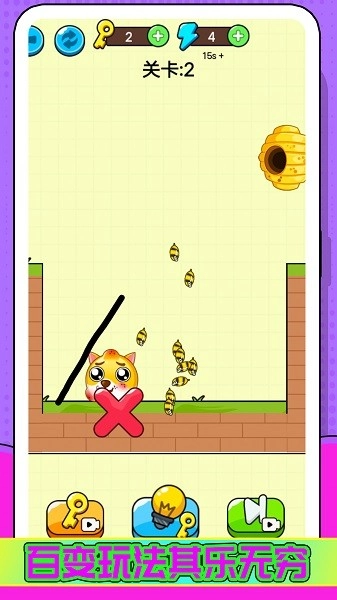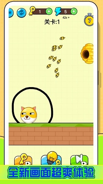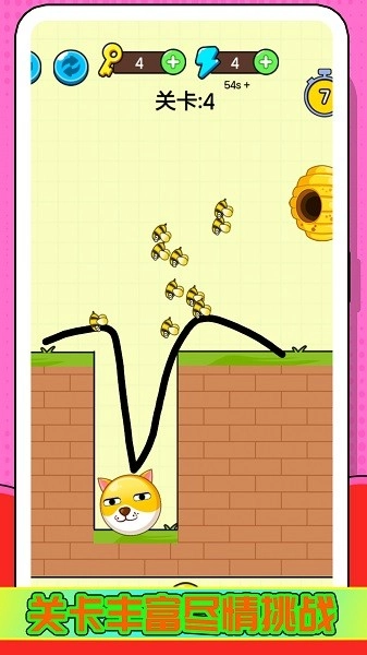这款充满魔性的画线护狗游戏里,玩家得守护蜂窝下方的小狗,通过画出恰到好处的线条来充当保护它的屏障,防止小狗被蜜蜂蜇伤。你是不是那位画线高手呢?赶紧来试试挑战吧!