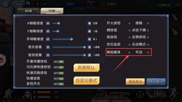 3.在设置中找到辅助瞄准,点击即可切换关闭