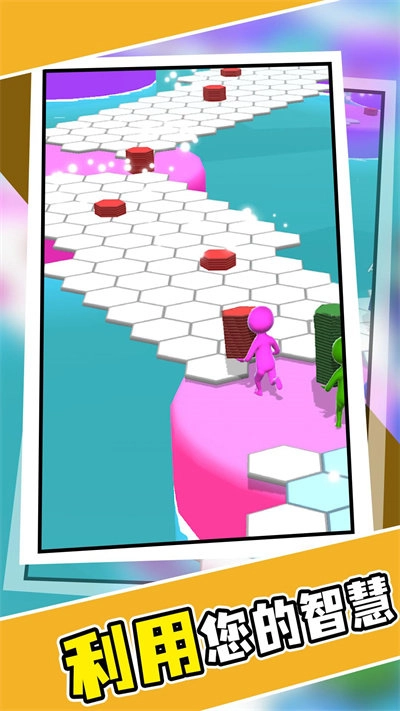 2、策略收集系统:独创瓷砖收集玩法,玩家不仅需要快速奔跑,还要合理规划收集路线。收集到的瓷砖需要精准投放到指定区域,考验玩家的空间判断能力。