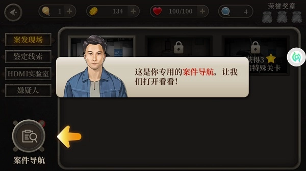 6、了解的玩法的基本,下面便是主界面关于案件的一些位置,如图所示,这里是你专用的案件导航。