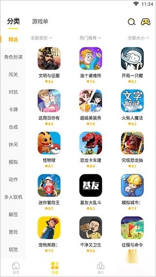 2、如果不确定具体想玩什么,也可以通过游戏分类进行查找,以便更快地找到心仪的游戏。