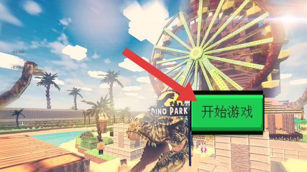 1、画面中融入了像素风格的摩天轮、恐龙等元素,设有【开始游戏】交互按钮,这是创意搭建玩法中的自定义地图内容,玩家能够进入该地图开启冒险探索之旅。
