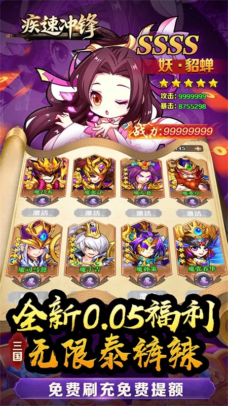 《疾速冲锋》是一款以广为人知的三国历史为背景的策略卡牌手机游戏。玩家将踏入因时空秩序紊乱,致使众多三国英杰被神魔化的架空三国世界,化身实力超群的一方霸主,招贤纳士、扩充军备、攻占城池、拓展领地,最终实现天下一统的宏伟目标。