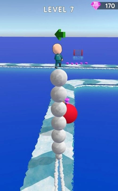 2、控制雪球进行冰冻跑酷游戏。在通往终点的赛道上,收集更多的雪球来增加你的力量。