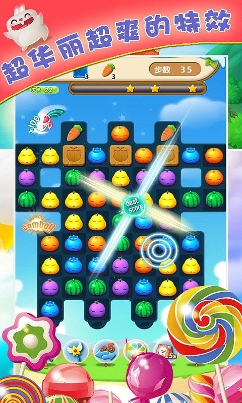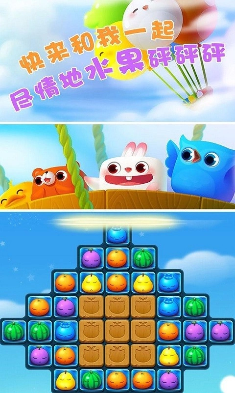 1、这款游戏以换位三连胜为基础,加入各种萌萌的水果形象,创新玩法带来更刺激的体验。