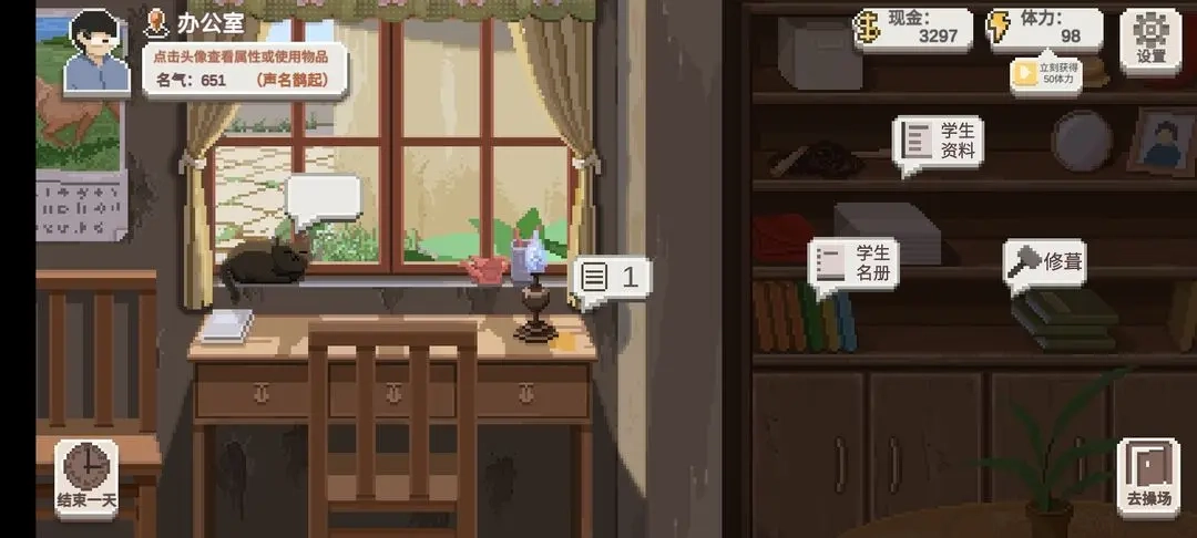②:上完课后出来看到柿子一定要记得摘(加25体力)回到办公室有很大概率会看到一只小猫做羞羞的事情会获得10体力