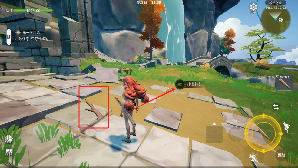 2、玩家可在世界各处搜集到不同的资源素材,靠近素材点击拾取即可收集。