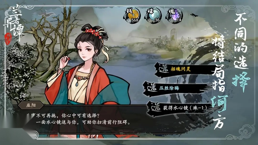 前几轮对话全点,会解锁与李又对话,再解锁战斗场景“地宫”,战斗获胜后解锁“招魂线”,和斩秋对话选择进入“招魂线”或者“厌胜线”,后续对话全点。