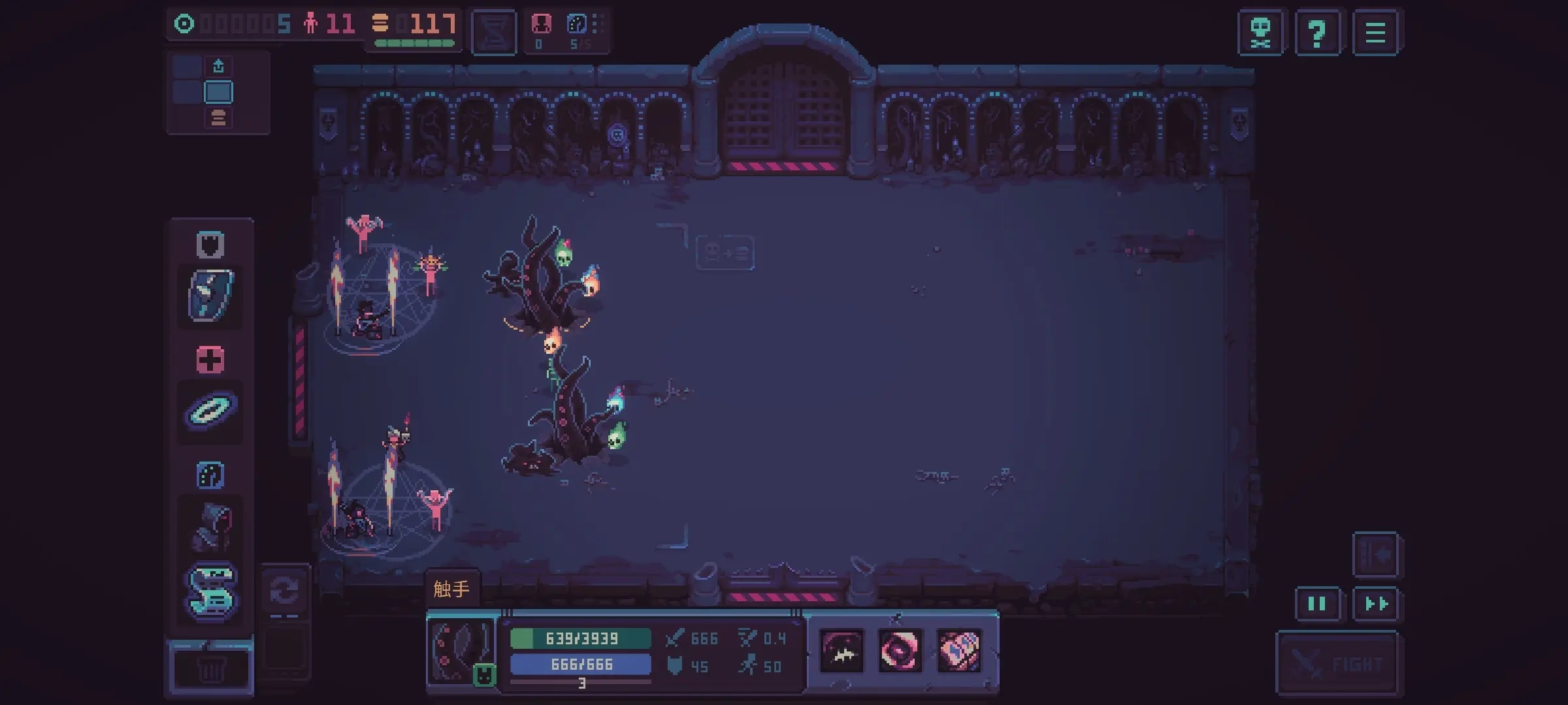 1、像素风的游戏画面,充斥着各式各样的黑暗元素。