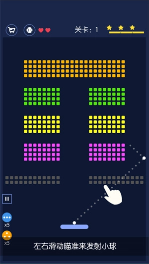 1、按照提示左右滑动进行瞄准,以此来发射小球