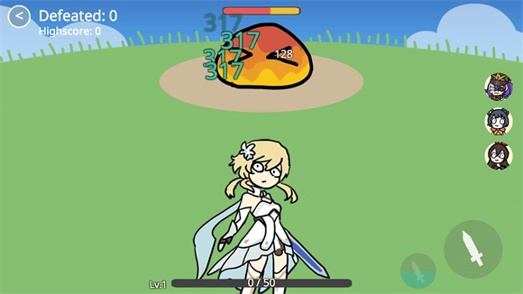 4、史莱姆谷是通过攻击史莱姆给角色升级的,点击屏幕就可以攻击史莱姆,击败史莱姆就能获得经验和抽卡资源。