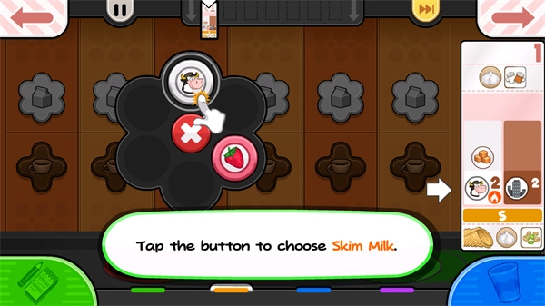 1、玩家需完成客人的订单,点击左侧按键后,即可开始制作咖啡。