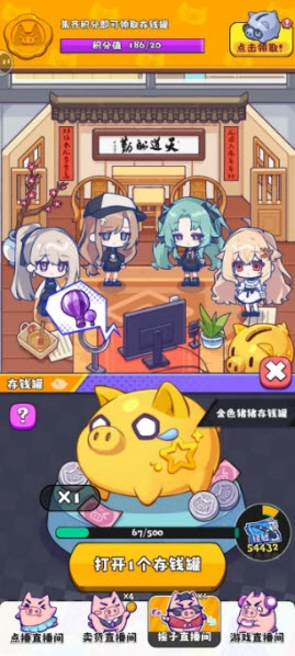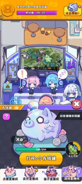 3、通过猪猪存钱罐可获得不同资源,具体的大家自行体验,同时根据不同角色的特长,在不同直播间可使收益更大!同时猪猪存钱罐有开出“角色碎片”的概率。