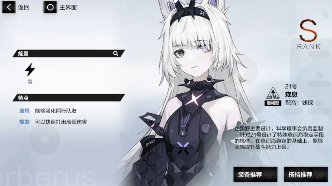深红囚影:萌新的强力雷系主C,前期开荒推图好大哥,由于战双的升阶,可以获取碎片慢慢升的,所以不用担心2S的问题(虽然很慢就是了)