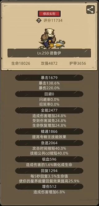7、毕业配置:250套装,急速暴击2000,适量吸血保证生存,其余全能增伤。毕业武器落日之杖、腐败水滴。被动、项链改输出向。随从黑暗的化身换黑色幼龙。